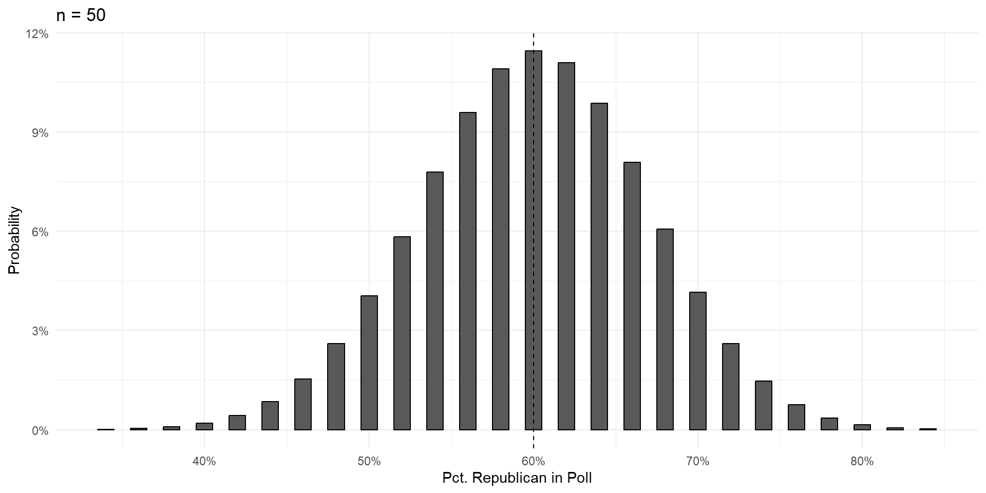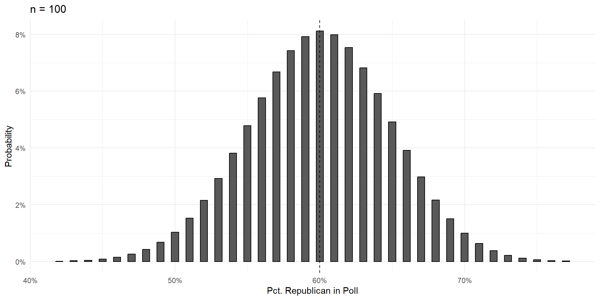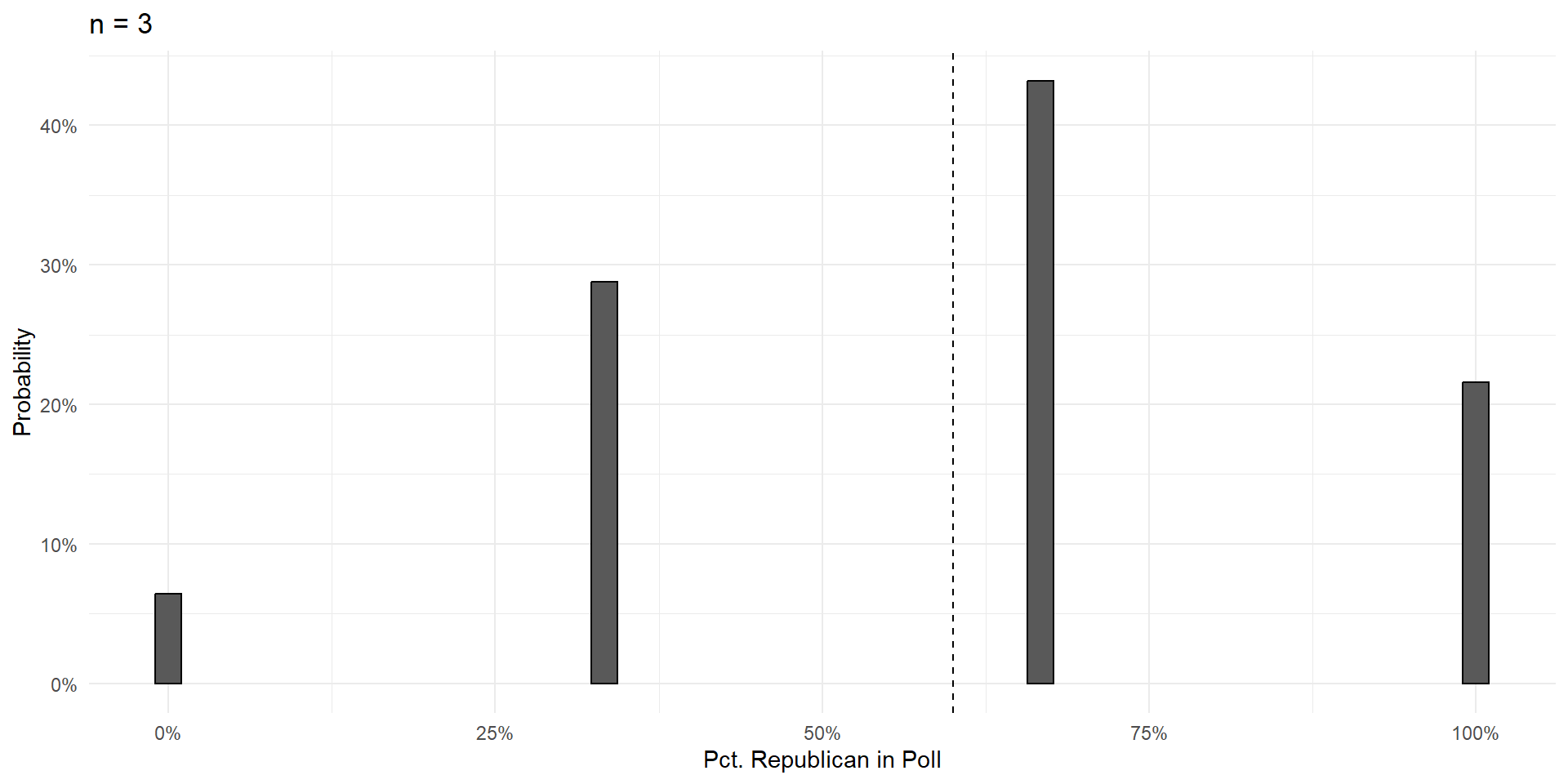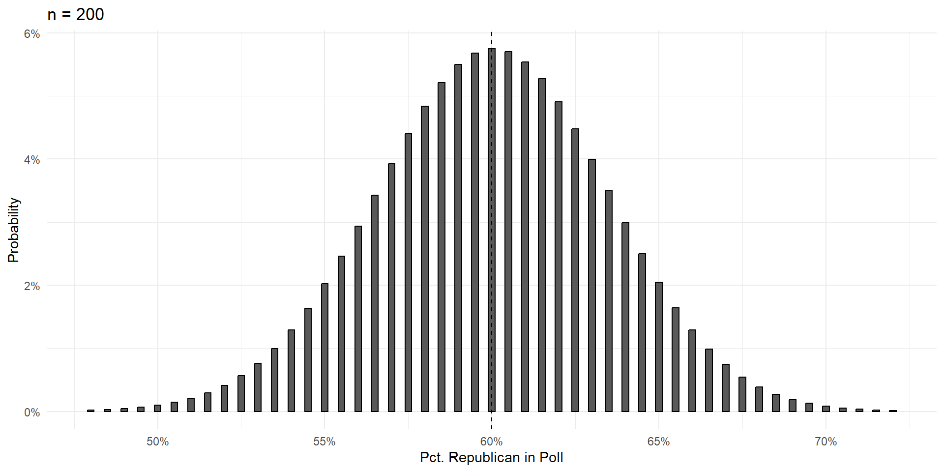 Over the next few slides, we’ll show that increasing the size of the poll \((n)\) does three things: