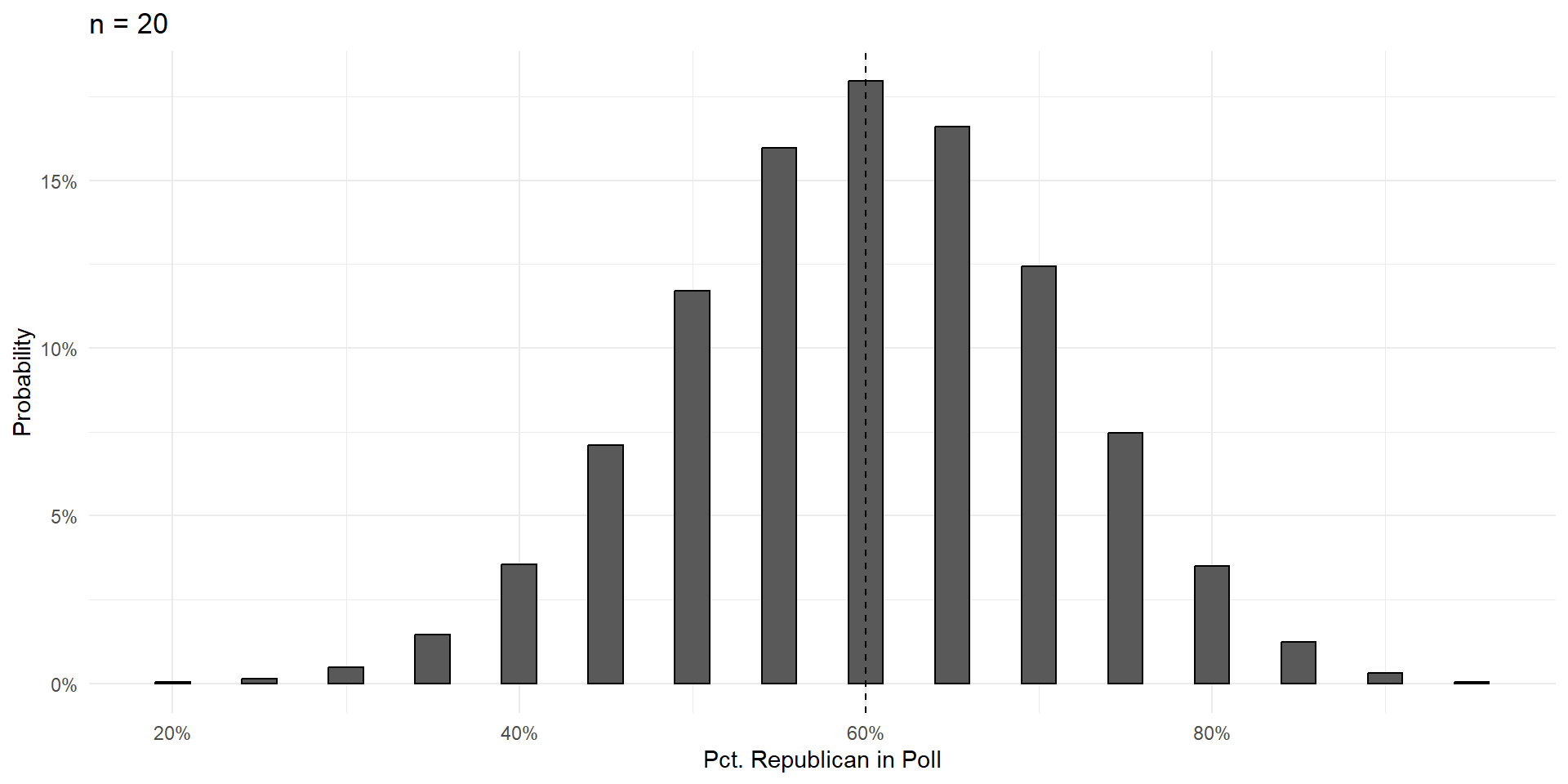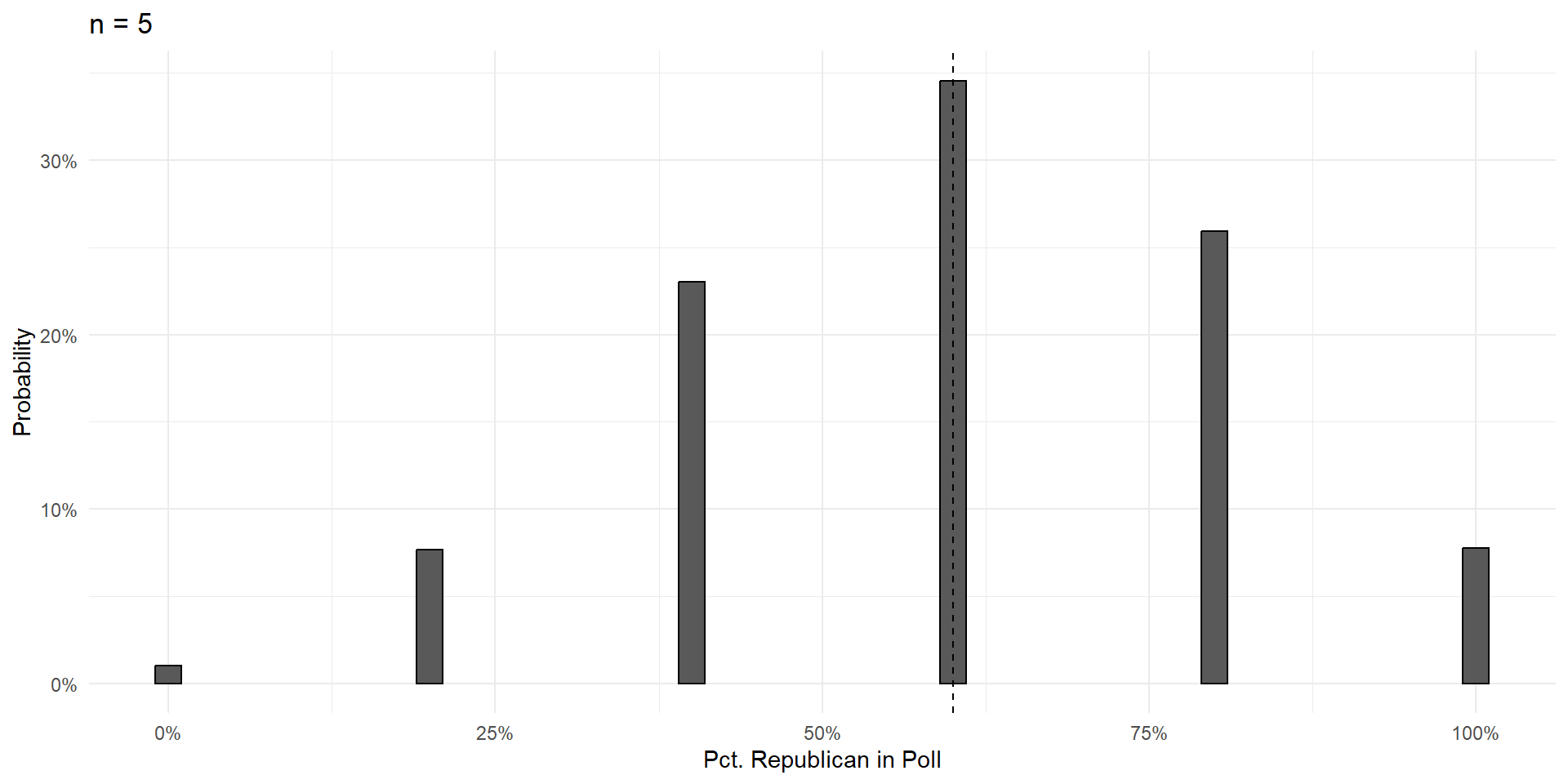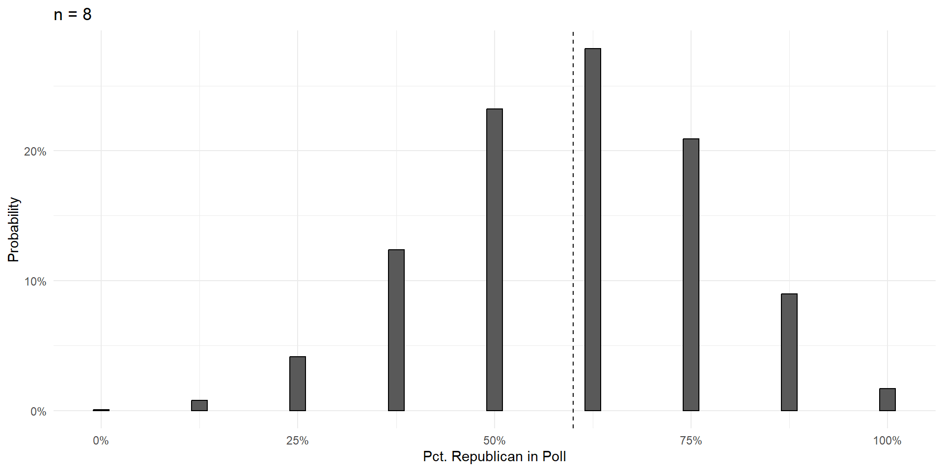 Over the next few slides, we’ll show that increasing the size of the poll \((n)\) does three things: