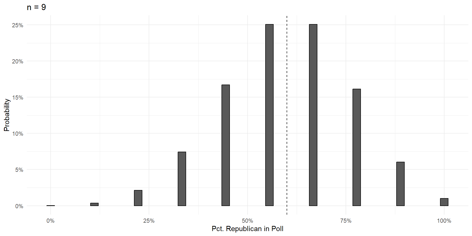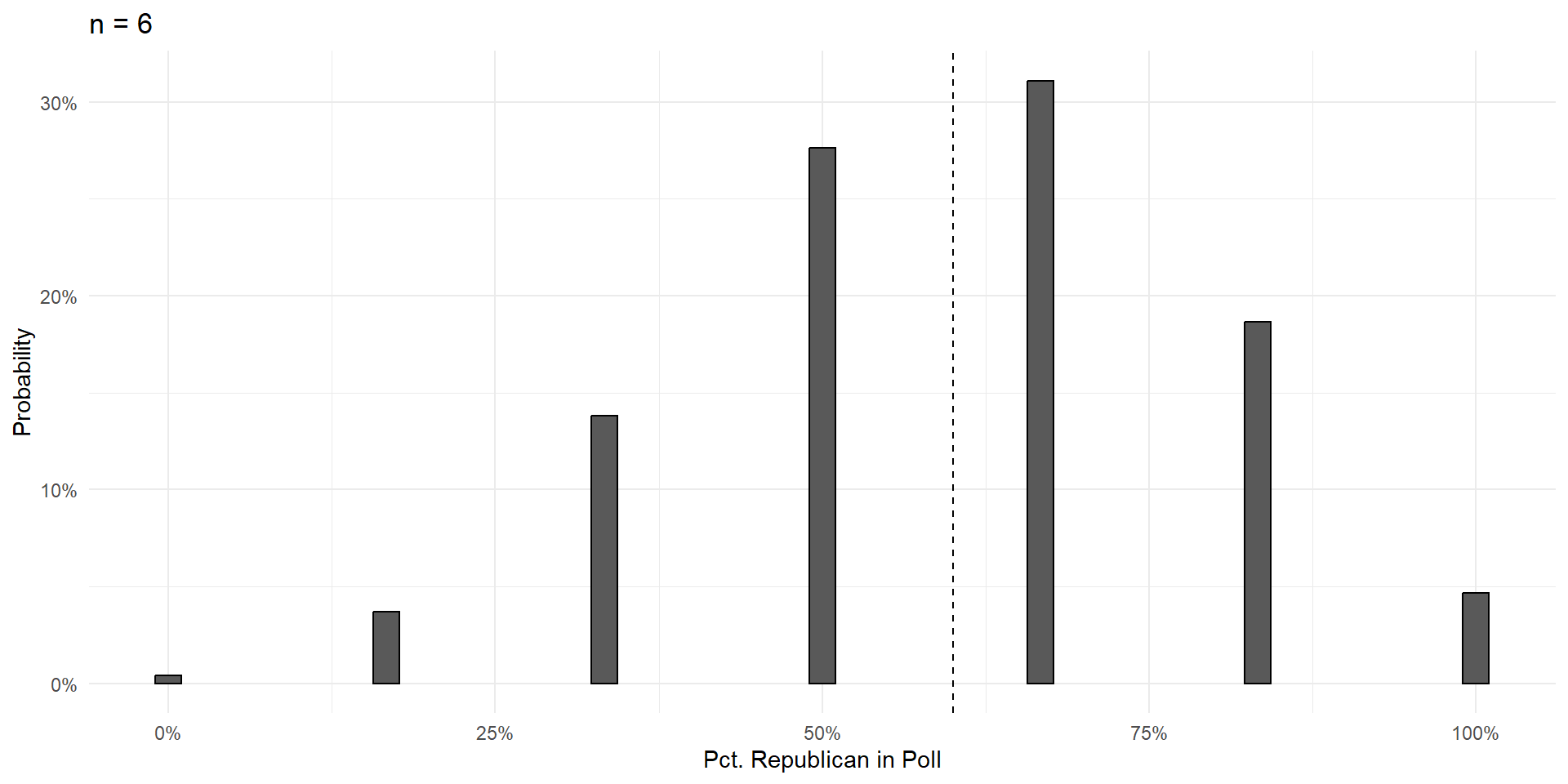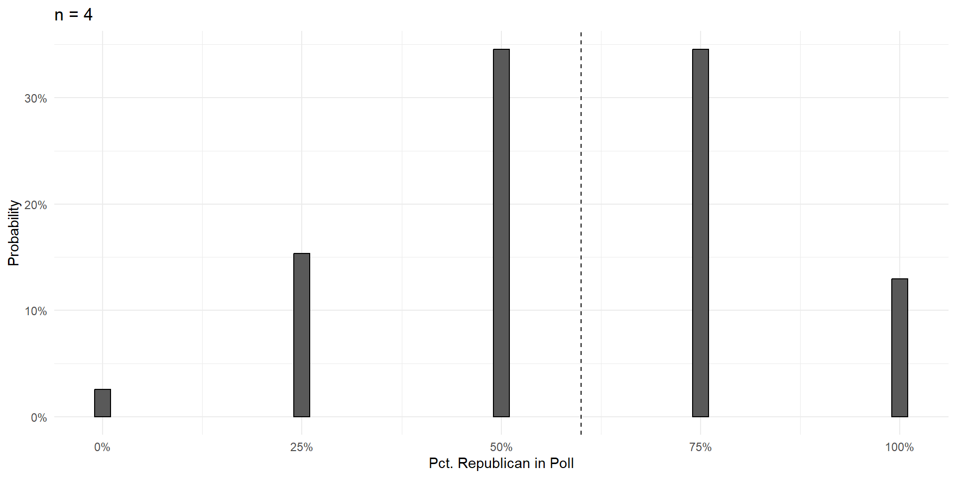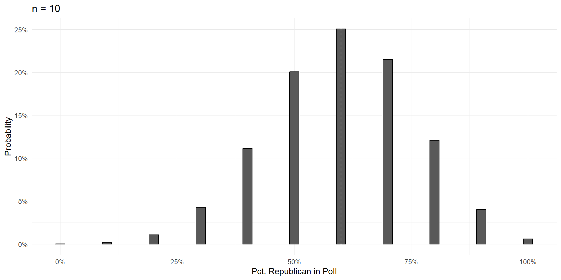 Over the next few slides, we’ll show that increasing the size of the poll \((n)\) does three things: