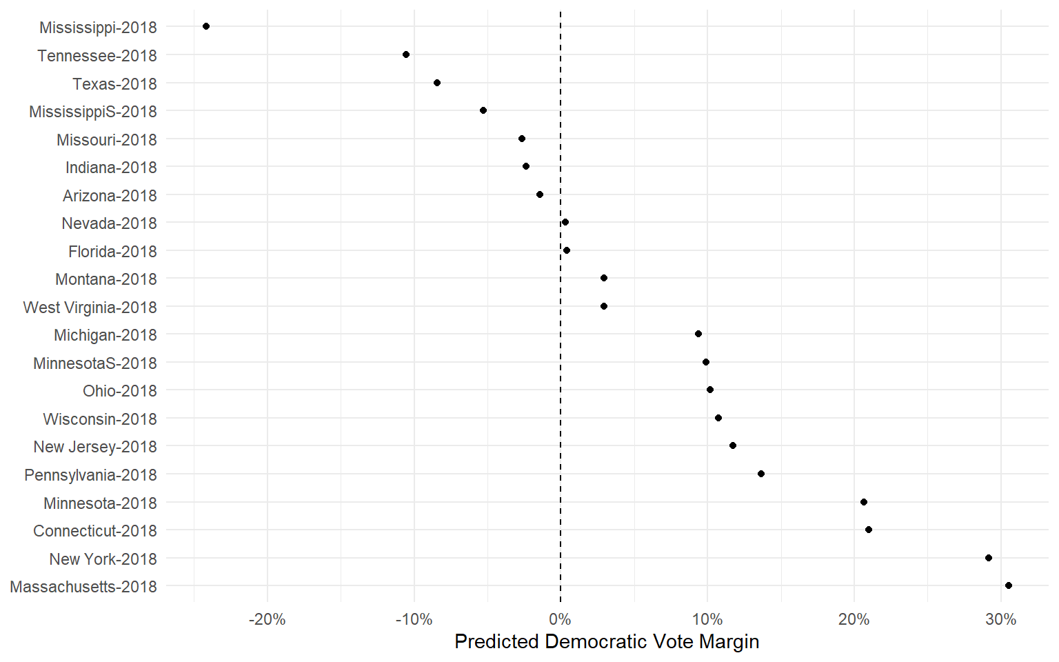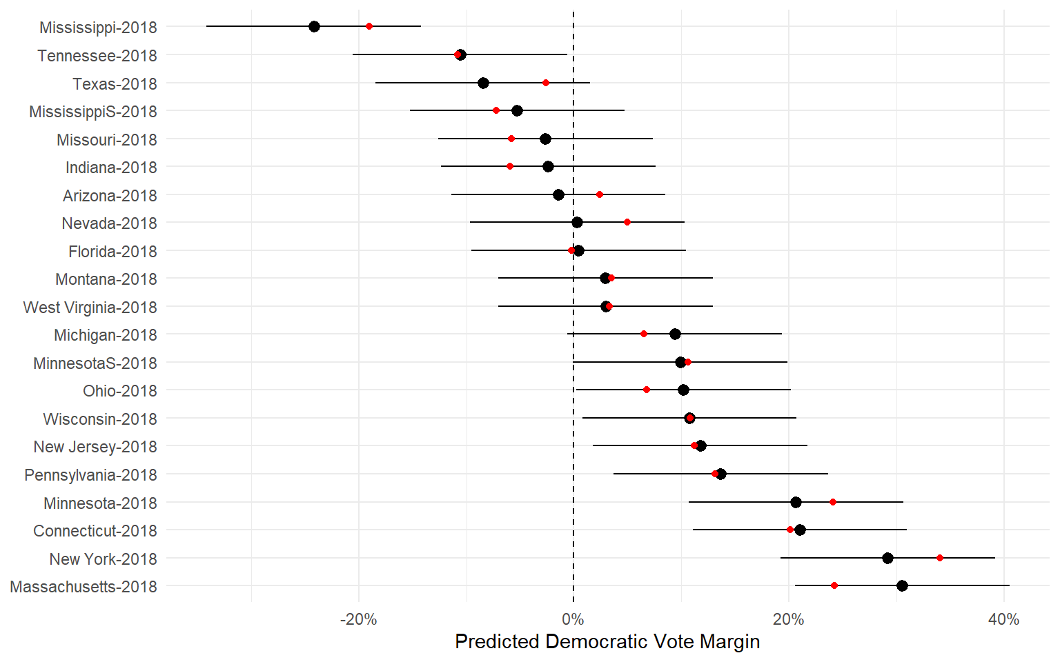 - The model was fit using 1992-2016 election data. Can we use the same model to predict the outcomes in 2018?