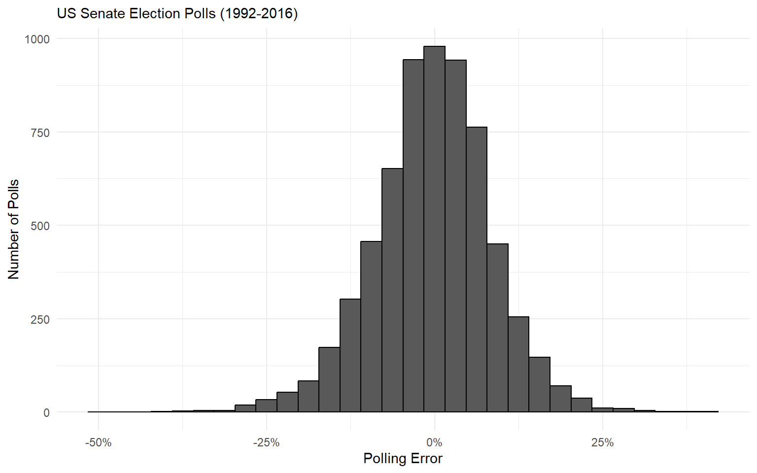 - Think back to our lecture on Bell Curves. Polling error should look like a normal distribution.