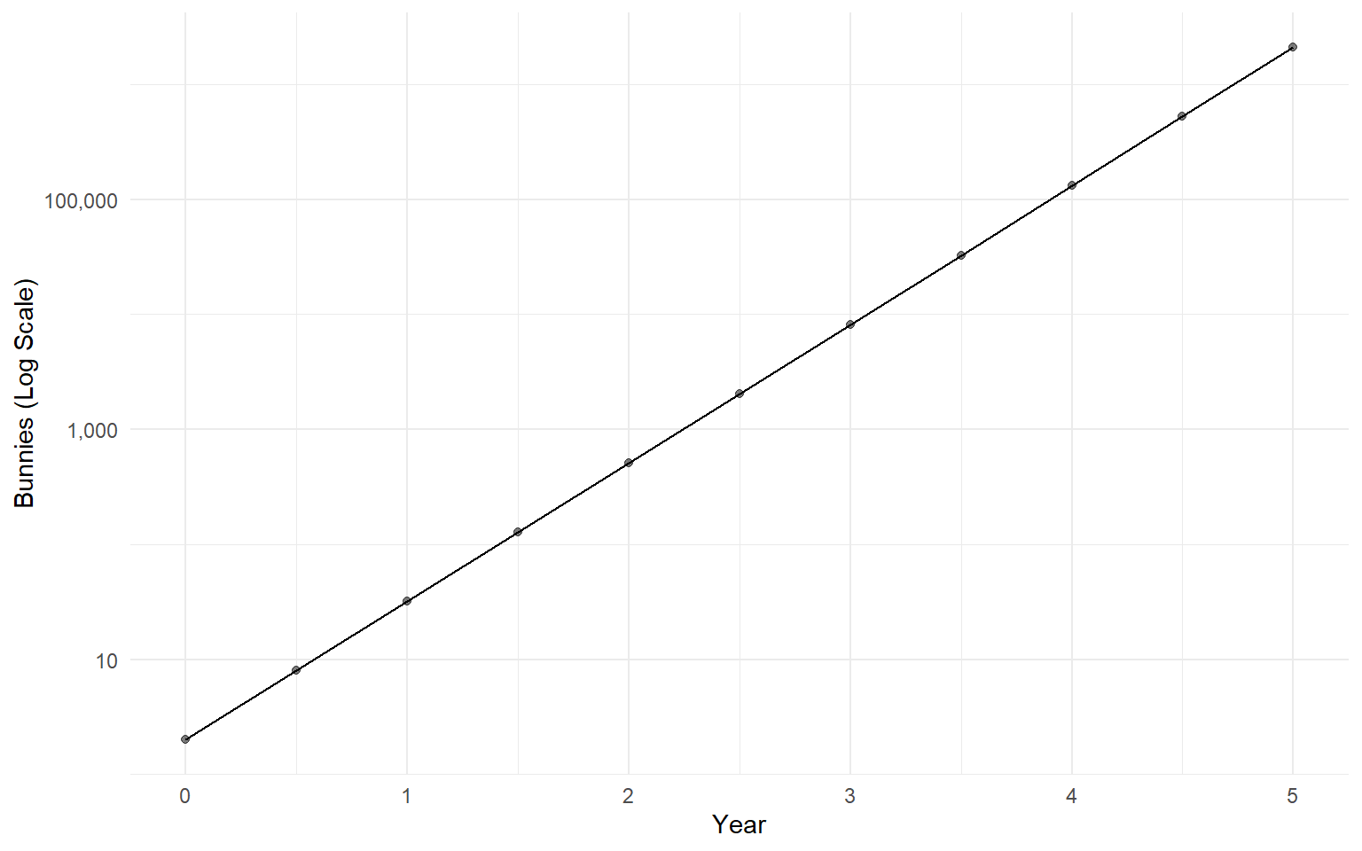 Plotted on a logarithmic scale, exponential growth appears linear.