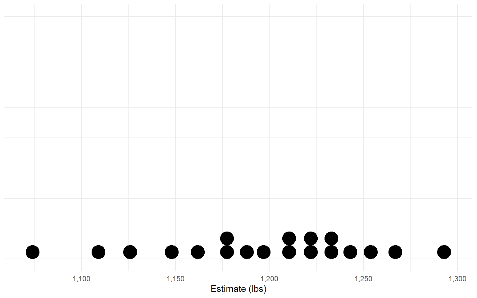 In Galton’s experiment, the median voter was off by only 9 pounds!