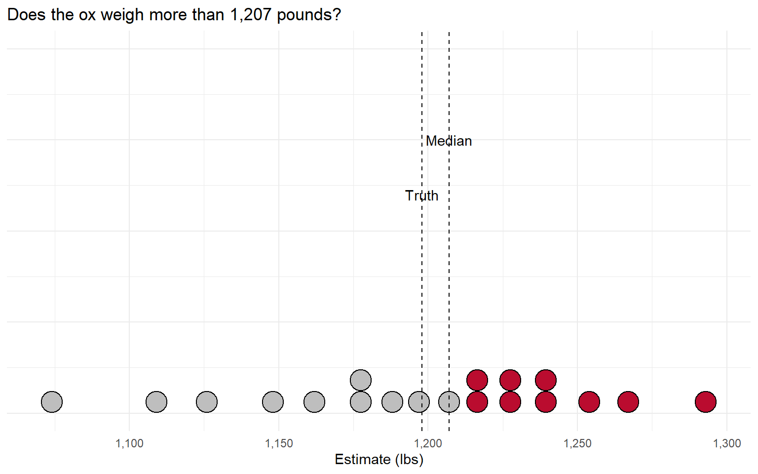 Consider the ox weight-judging competition described in Tetlock Chapter 3.