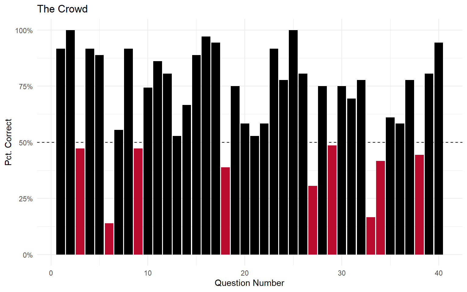 Ponder: What if I asked the class to vote on the answers? How many correct answers do you think the majority would get?