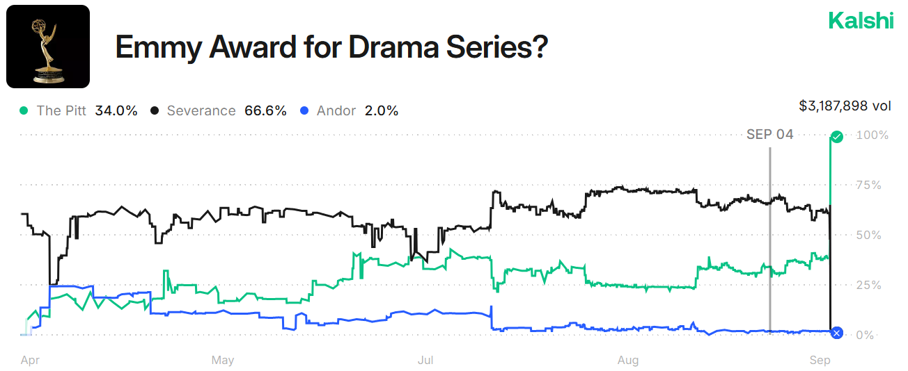 The “market price” for each contract reflects participants’ beliefs about the probability of that event.