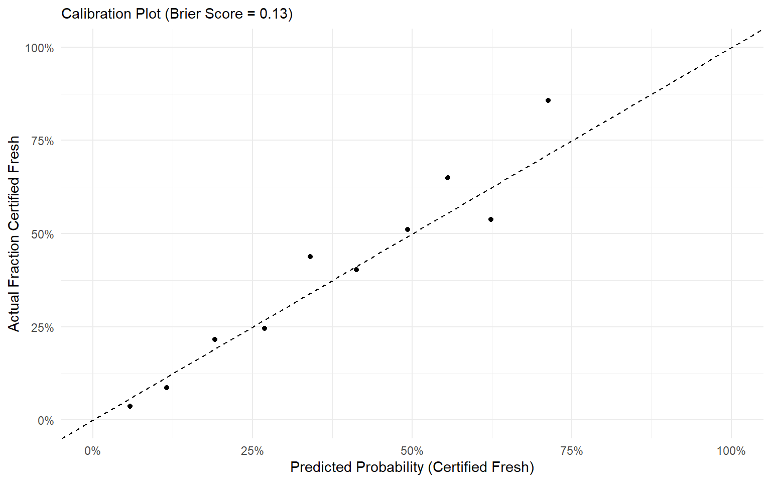 According to the Rotten Tomatoes Random Forest model, Roofman had a 69% chance of earning a Certified Fresh rating, and a 14% chance of being just regular Fresh.