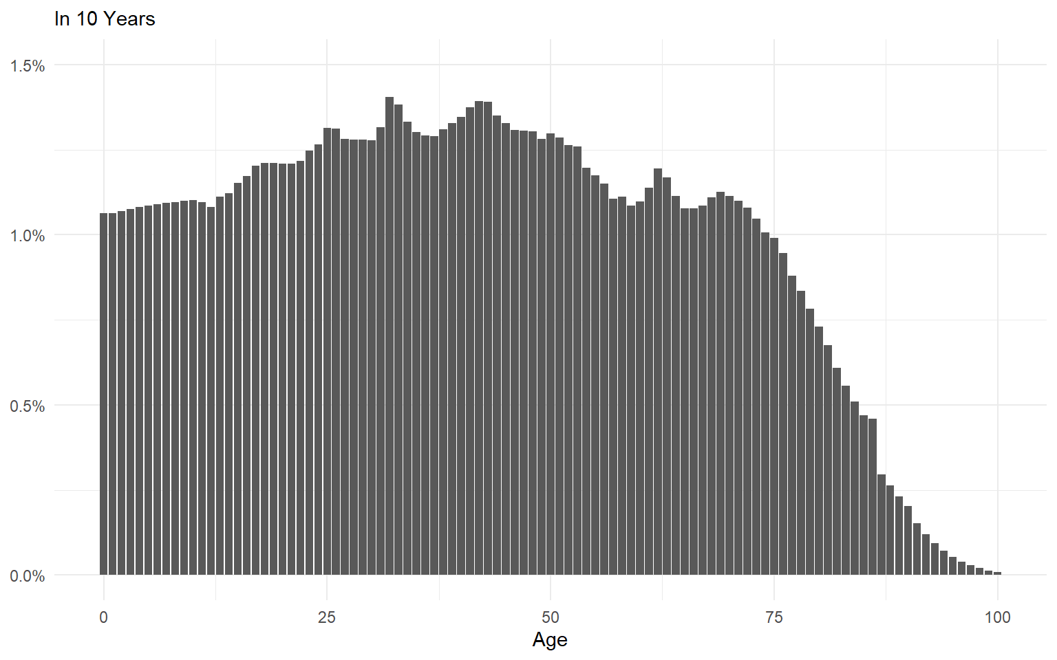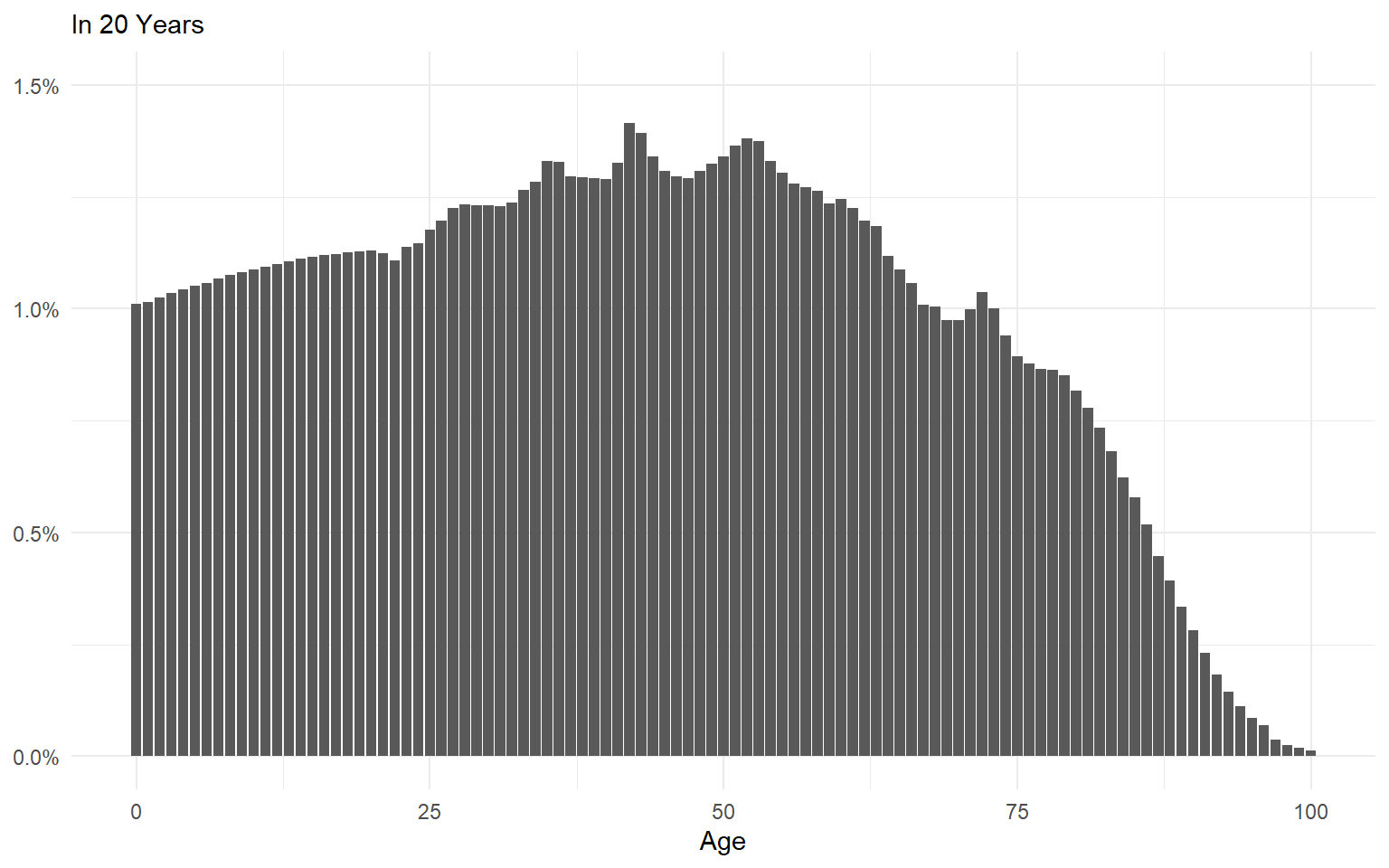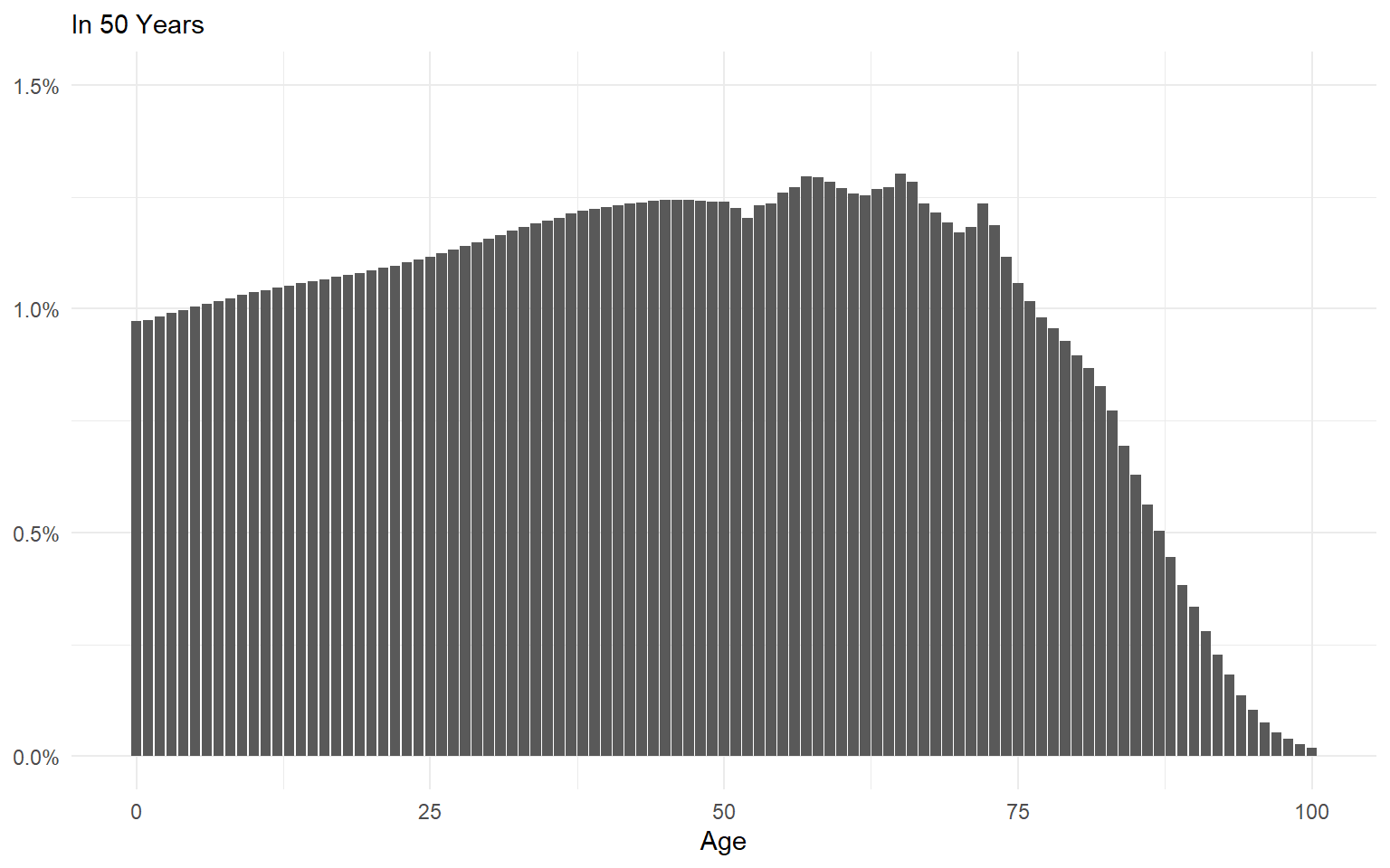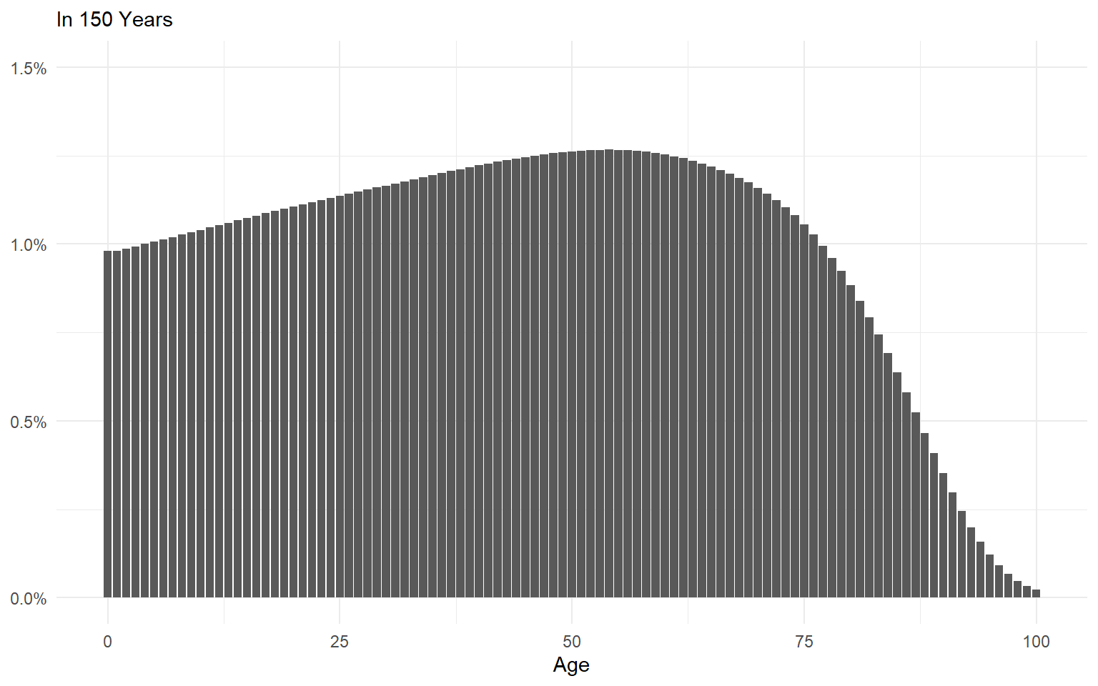If the current fertility and mortality rates remain stationary, the age distribution will eventually settle into an equilibrium.