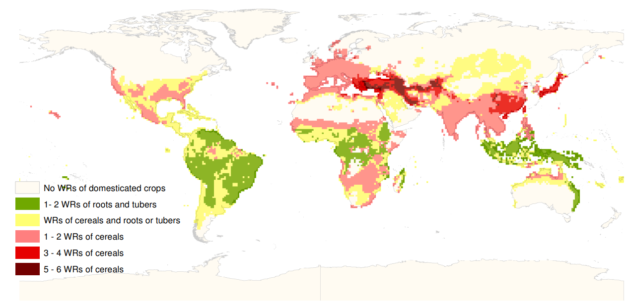 So it makes sense that cities first appears in the places where there are lots of wild cereals available for domestication (Mayshar, Moav, and Pascali 2021).